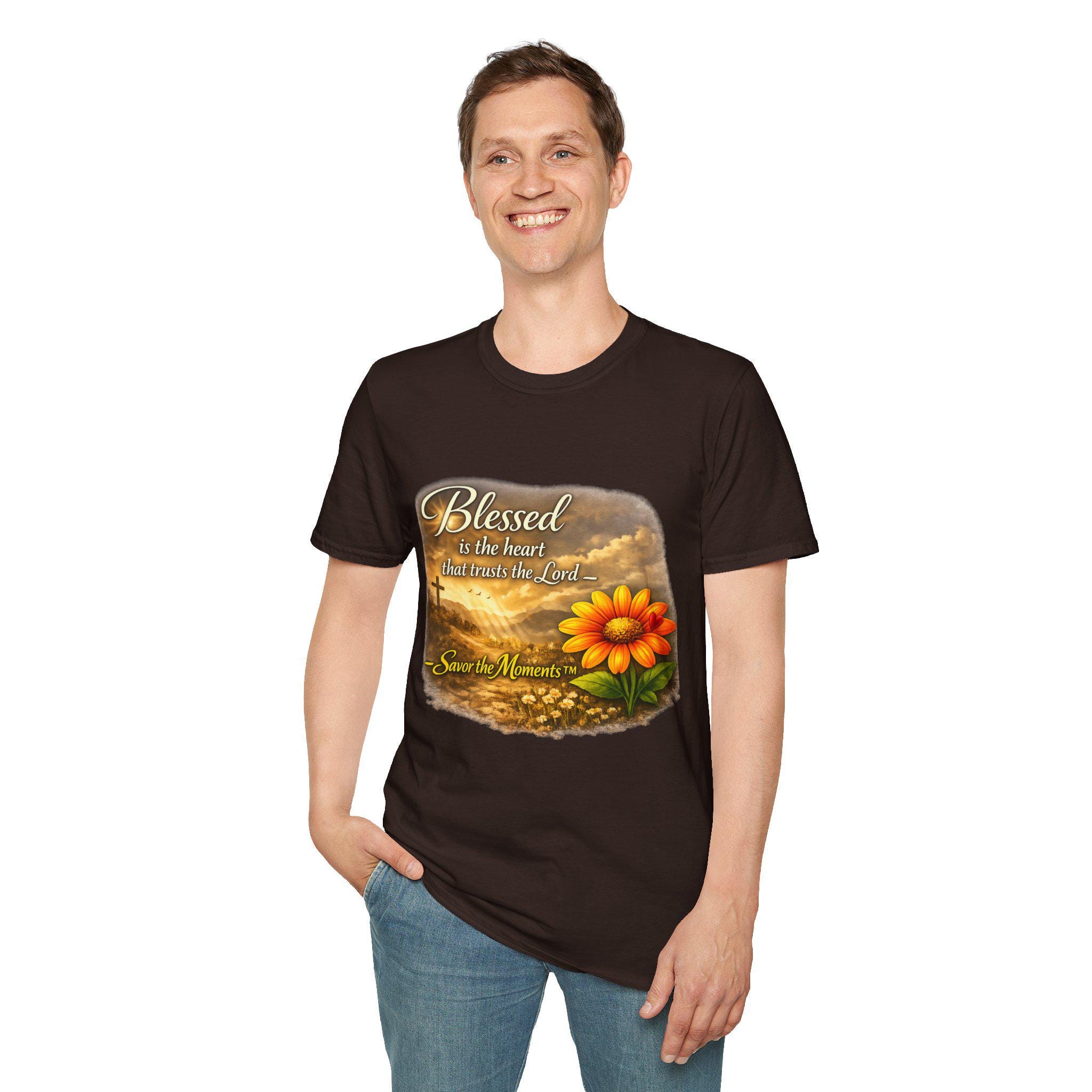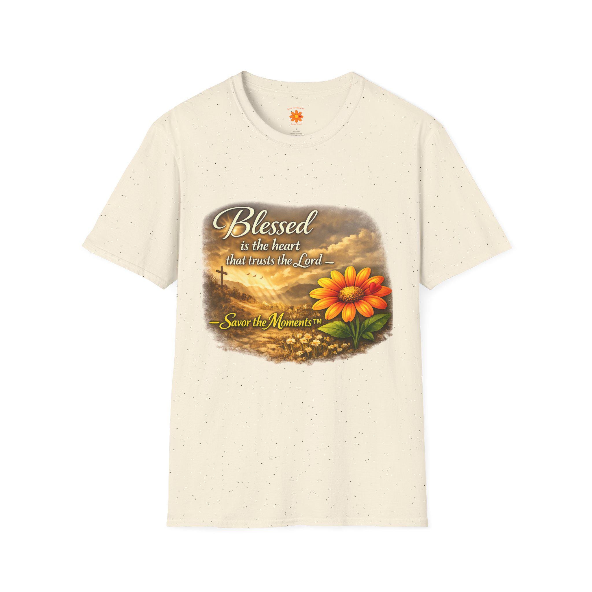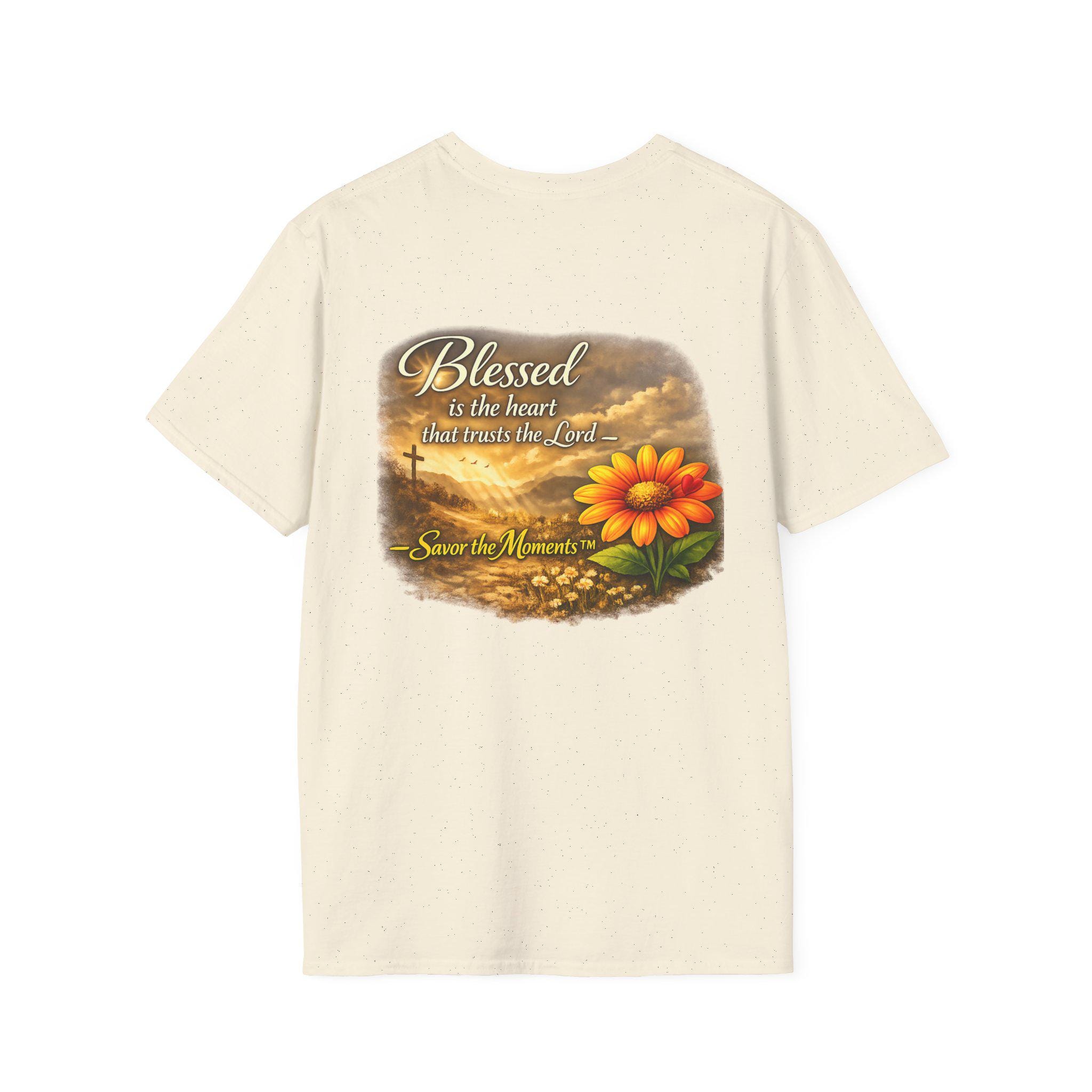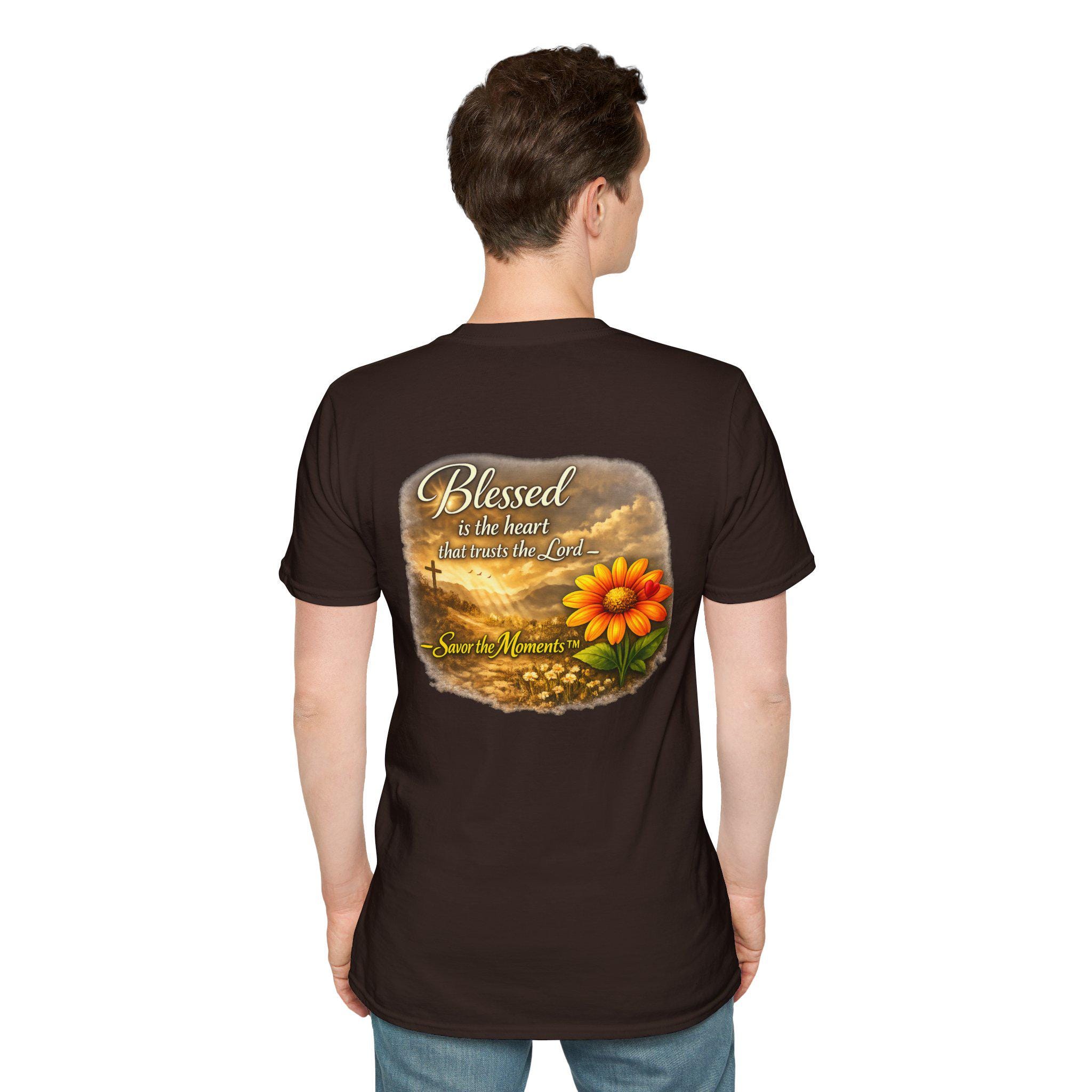 A lightweight, breathable tee that carries a gentle message of faith and gratitude. Soft ring-spun cotton gives a smooth, lived-in feel while the warm sunset artwork — a glowing bloom set against a cross and rolling clouds — brings calm and reflection to everyday wear. It slips easily into a quiet morning routine, a casual church gathering, or an afternoon spent visiting loved ones. The design reads like a small reminder to pause and savor the moment, blending wearable comfort with a quietly devotional style.