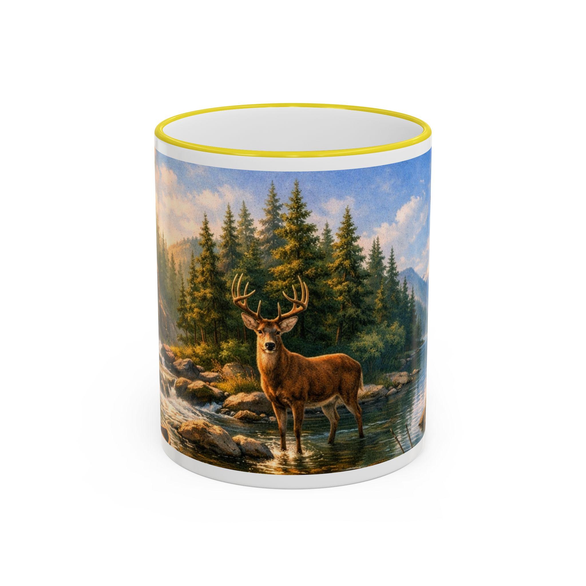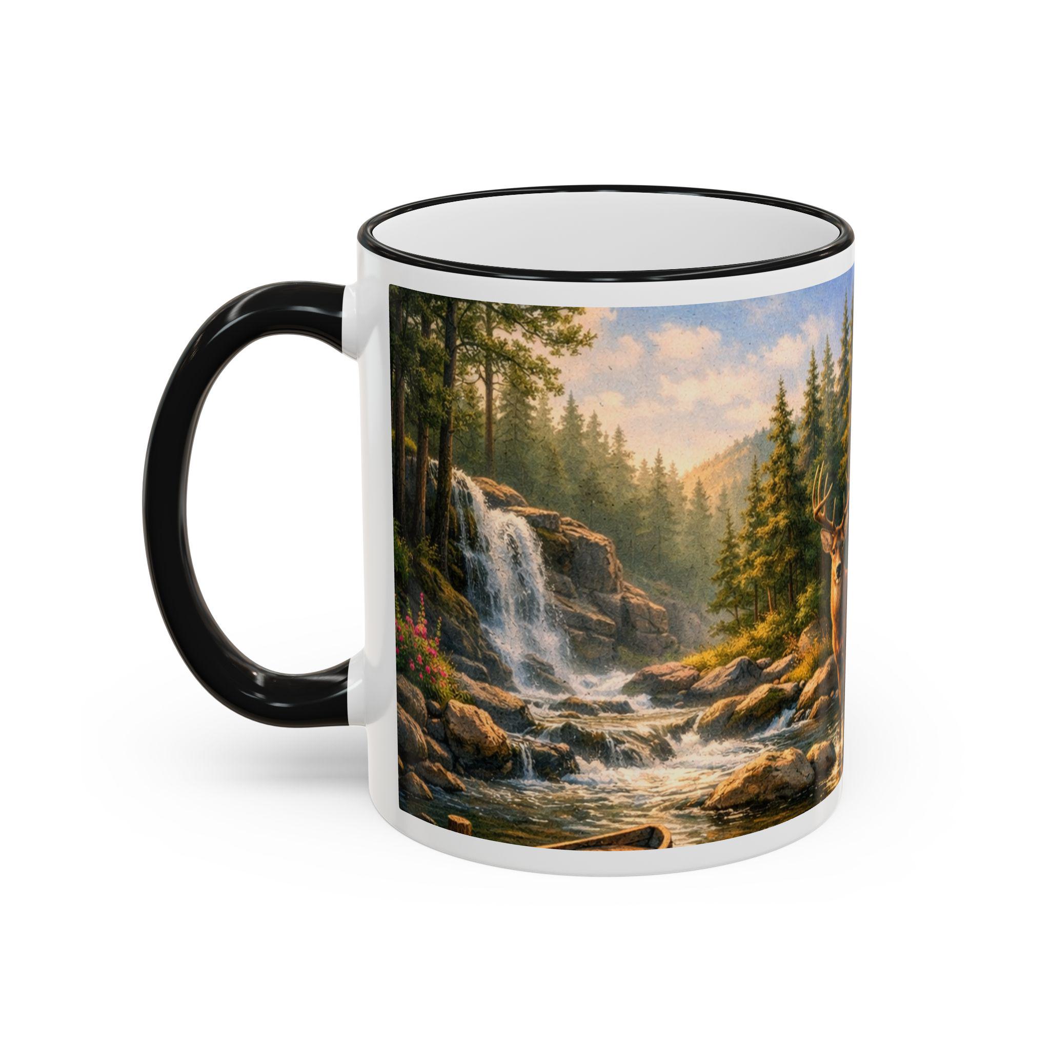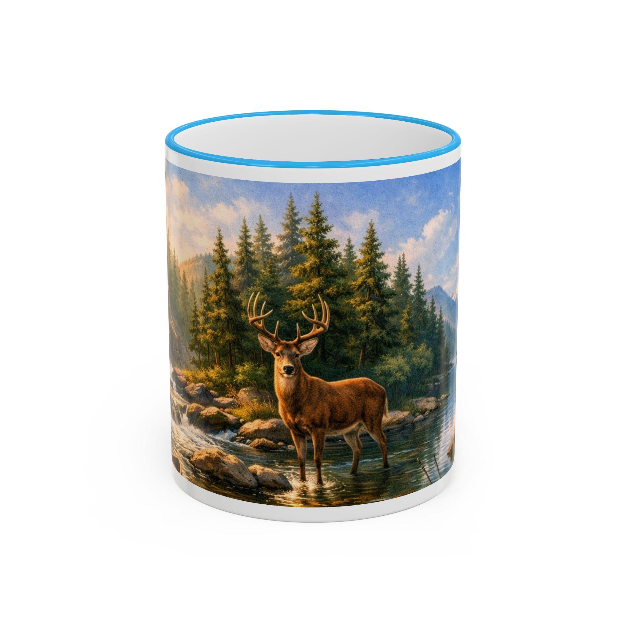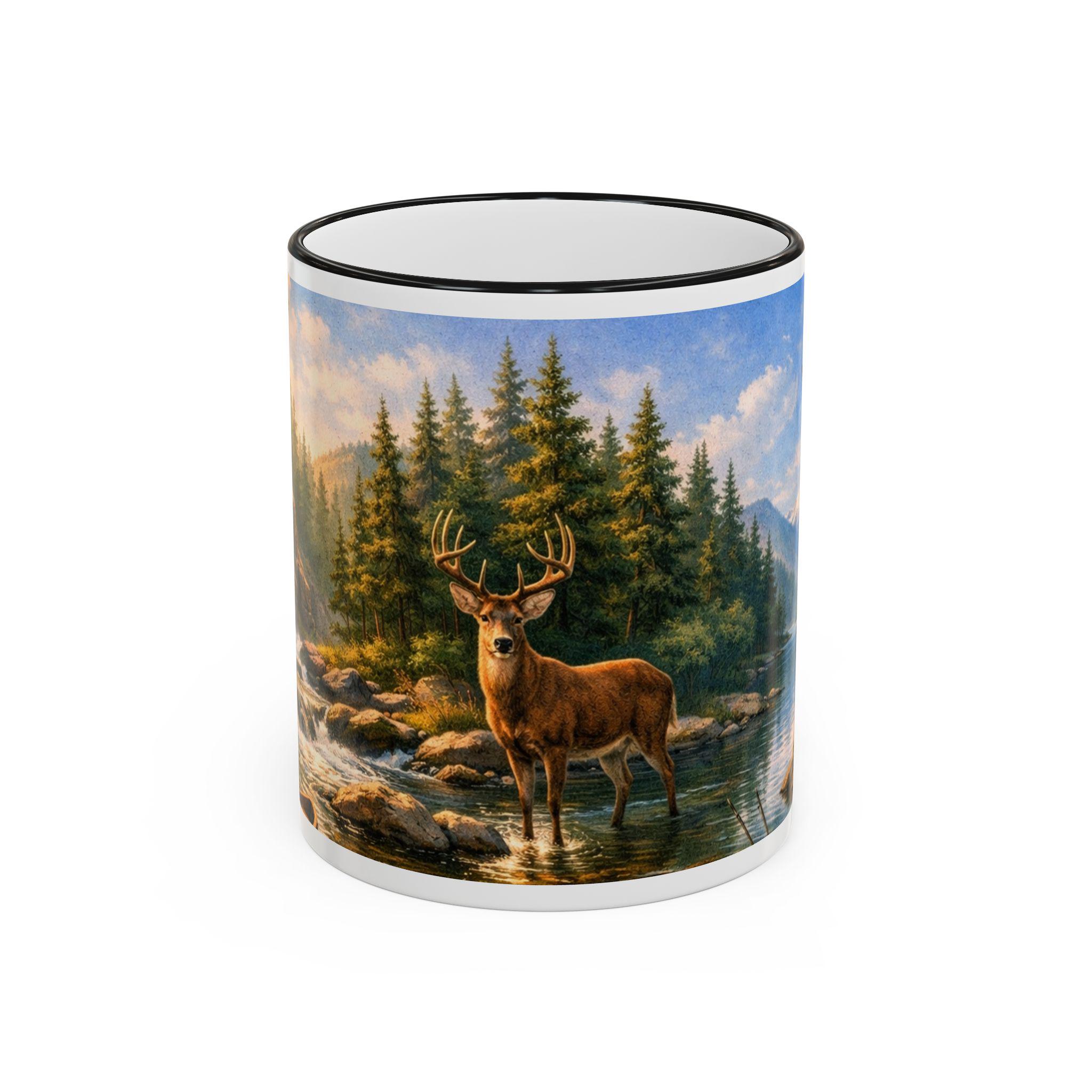 Majestic Deer in Forest Accent Rim & Handle Mug | Nature Landscape Coffee Cup