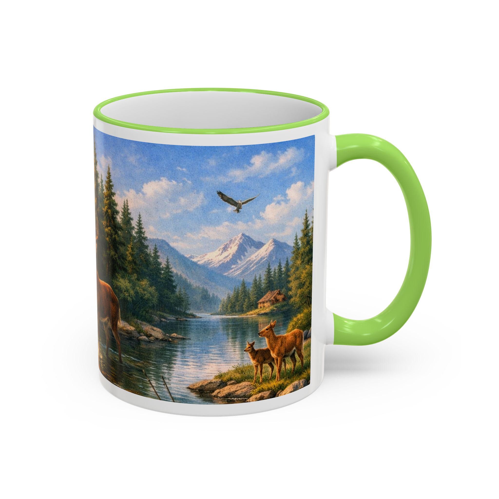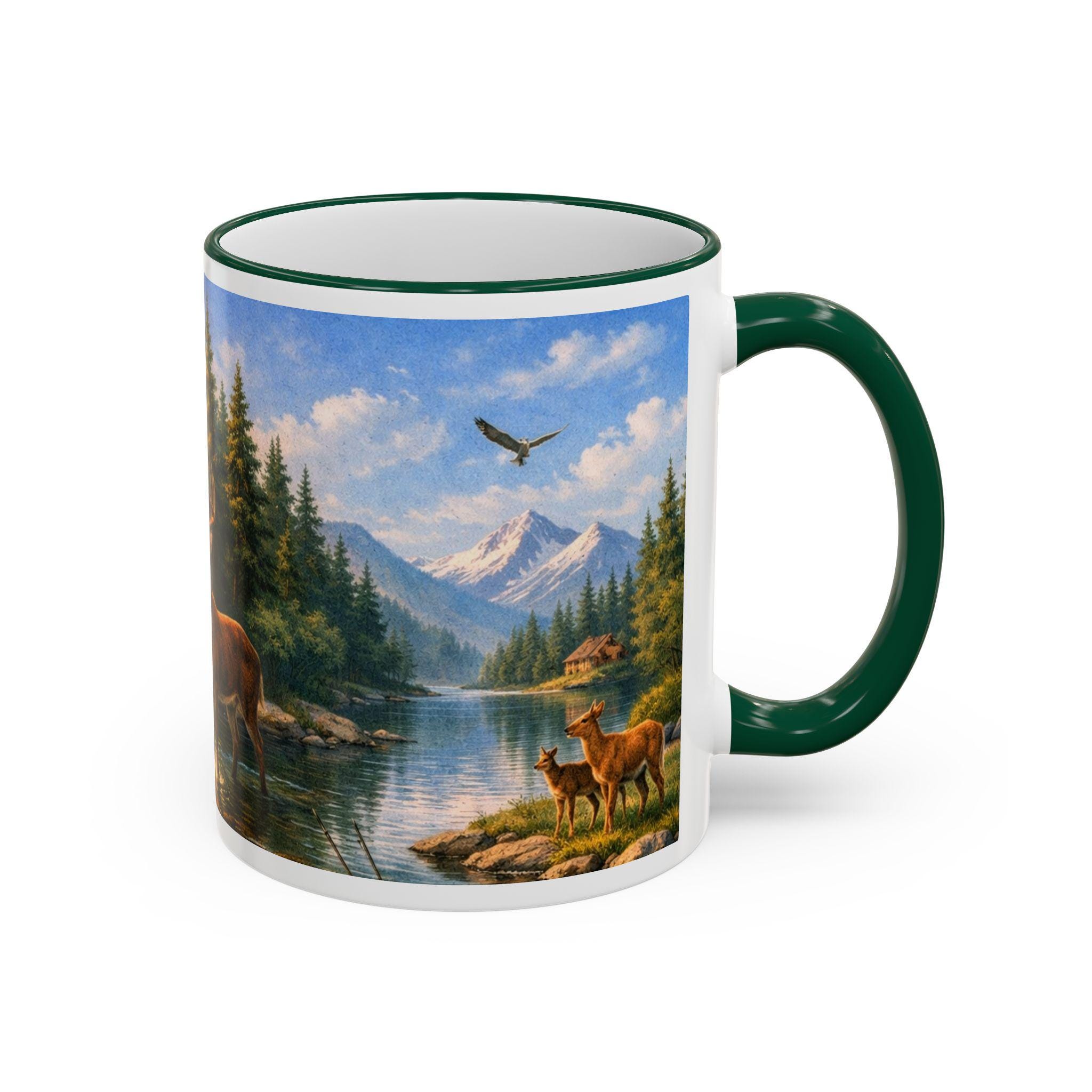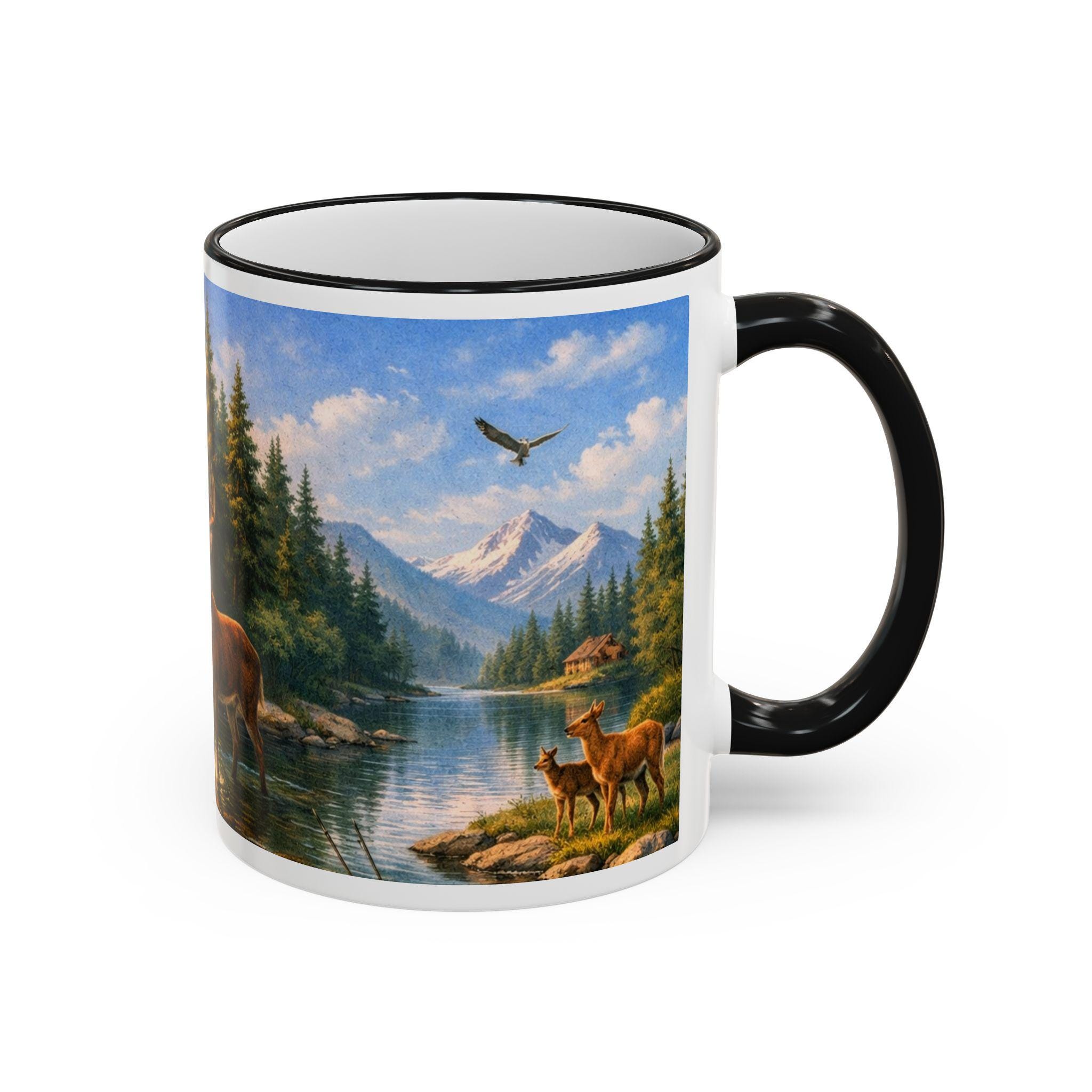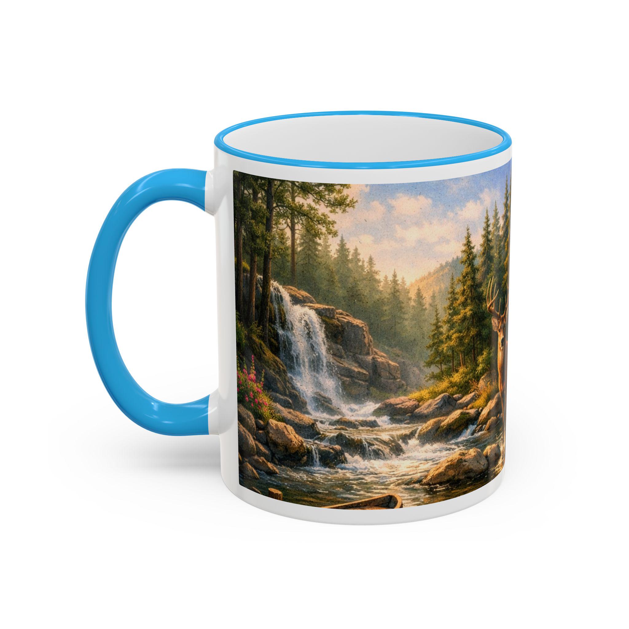 Majestic Deer in Forest Accent Rim & Handle Mug | Nature Landscape Coffee Cup