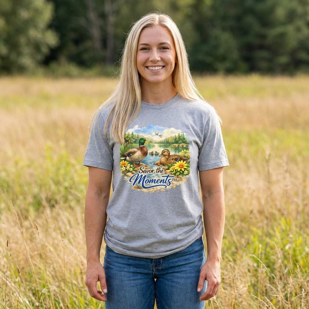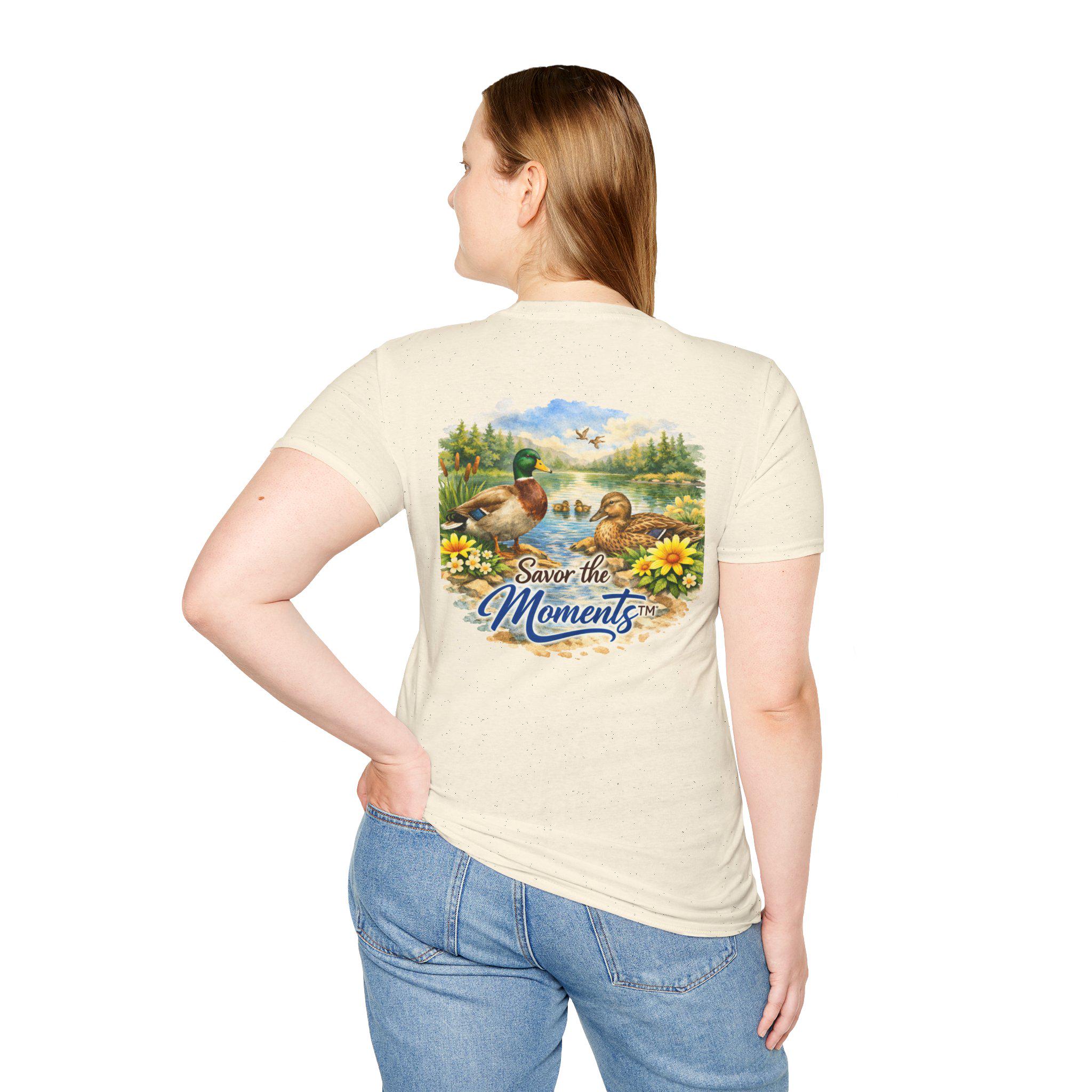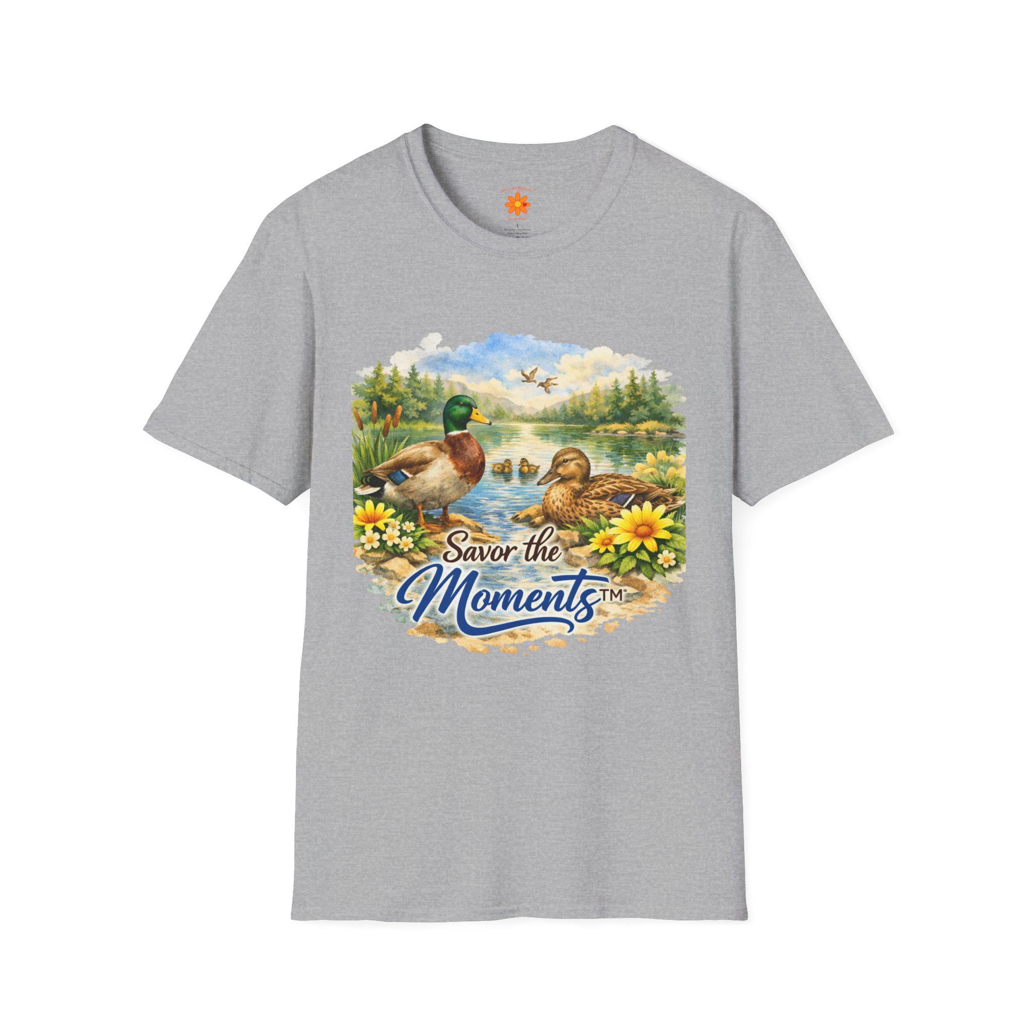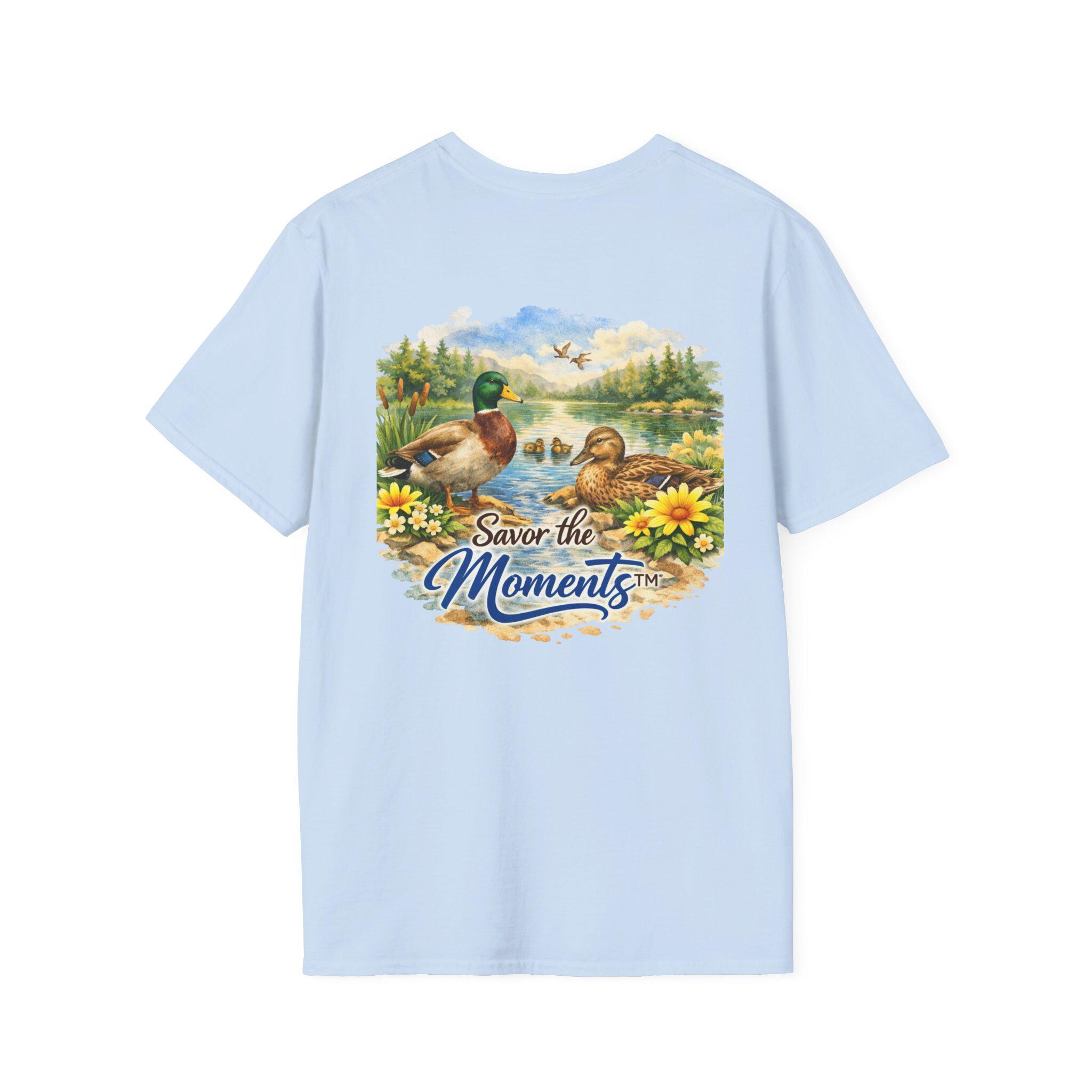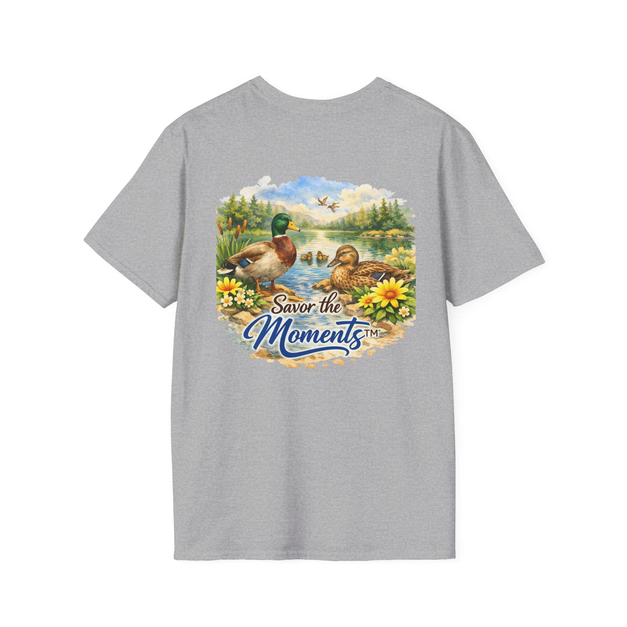 Sunset Lake Duck Illustration T-Shirt | "Savor the Moments"