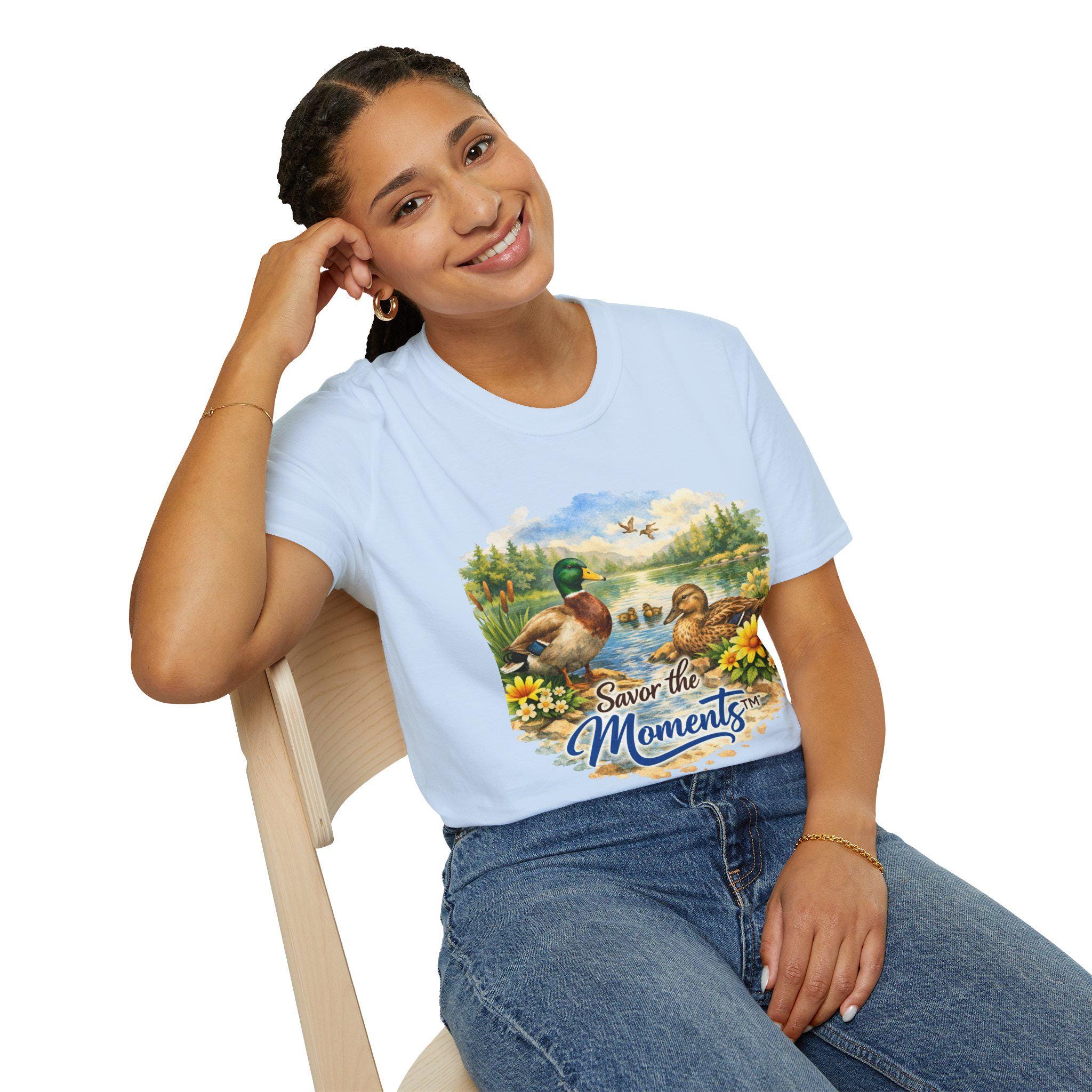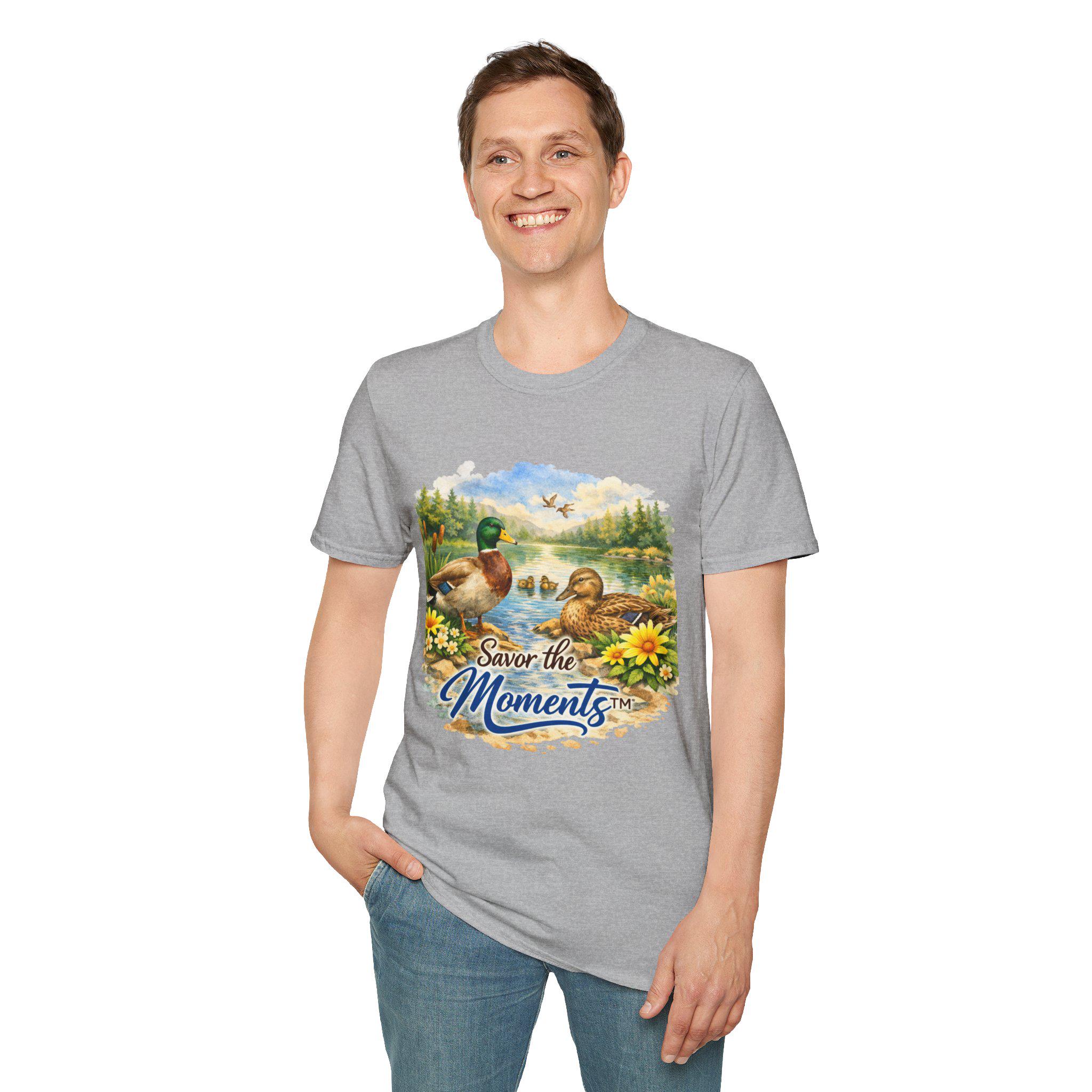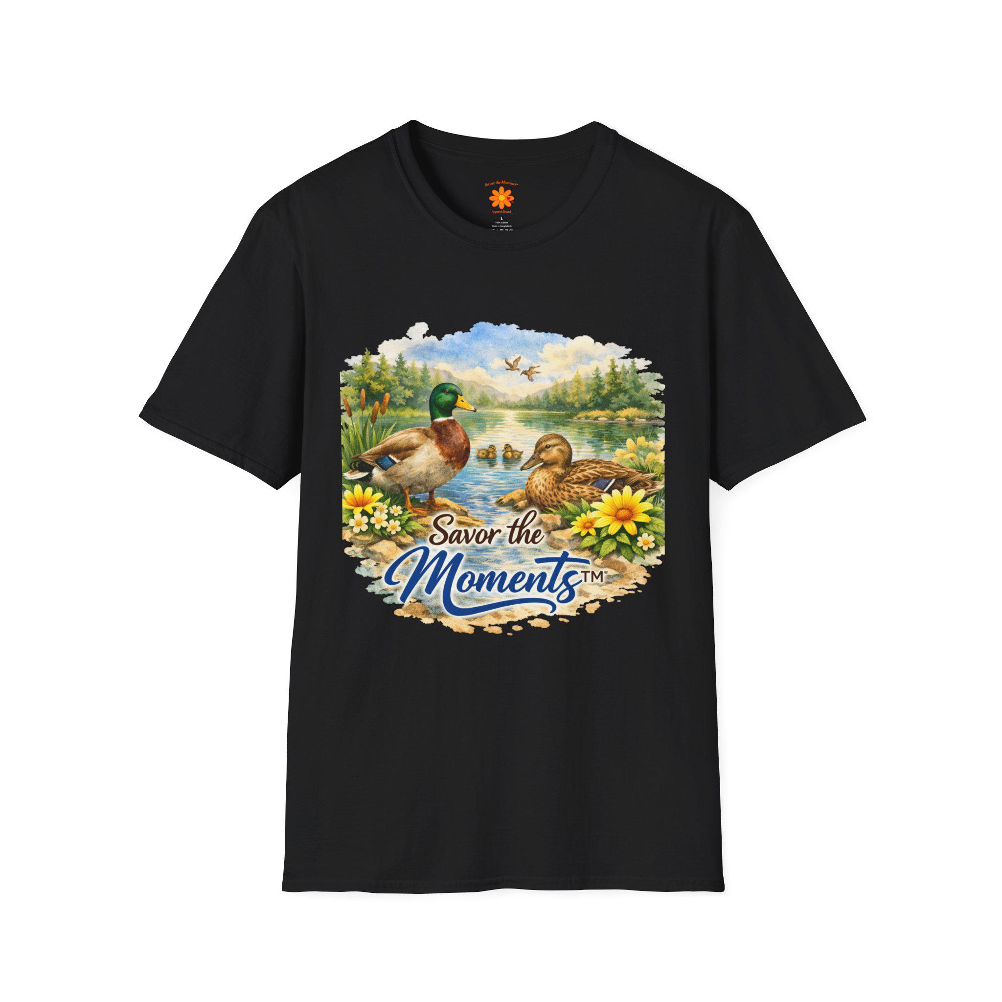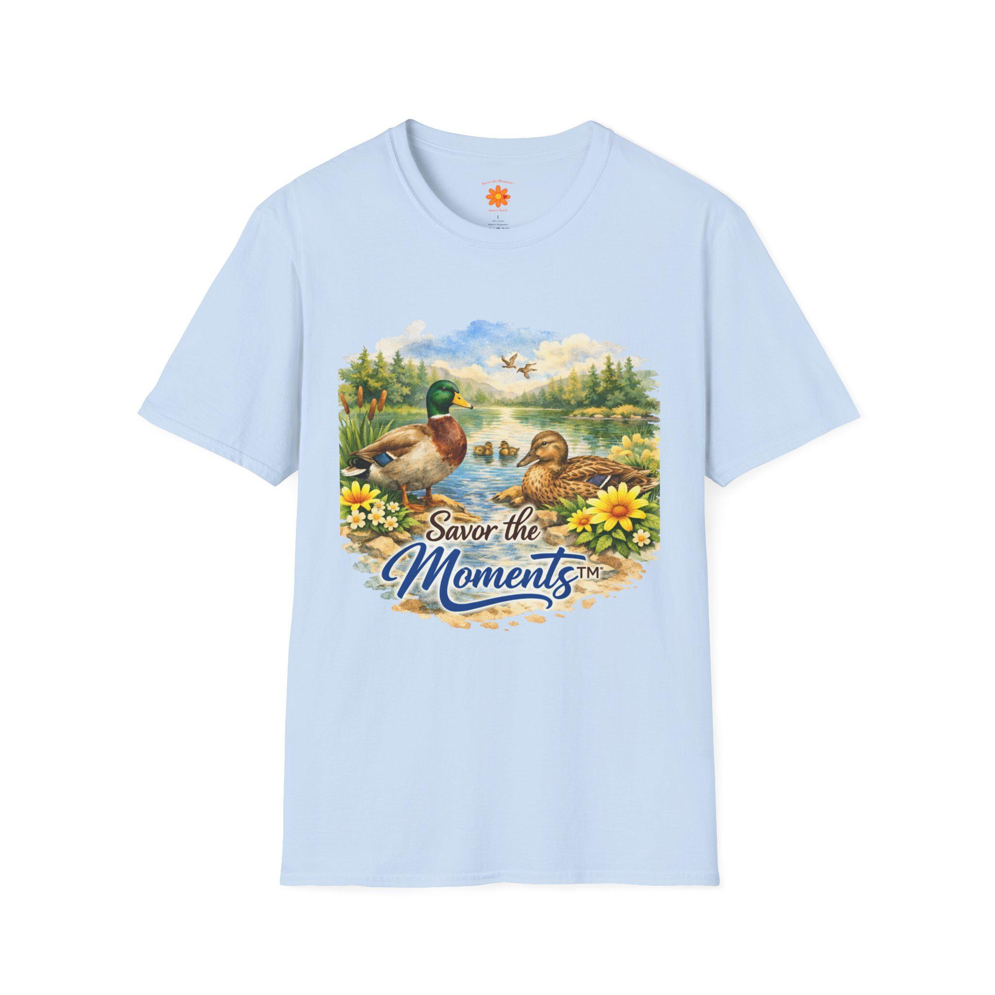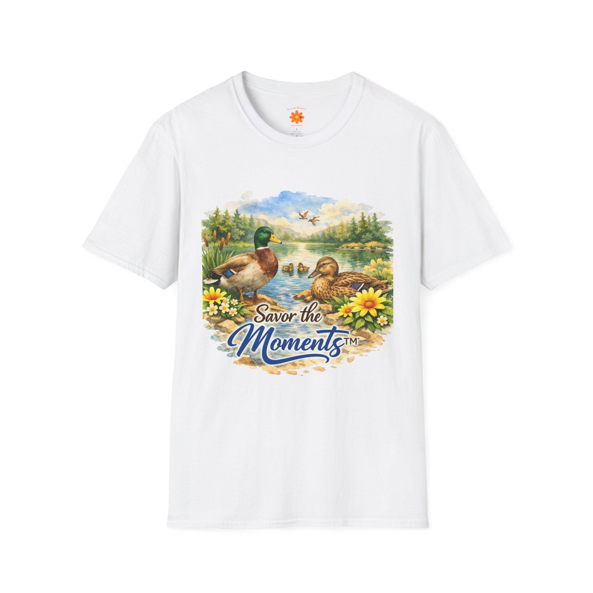 Sunset Lake Duck Illustration T-Shirt | "Savor the Moments"