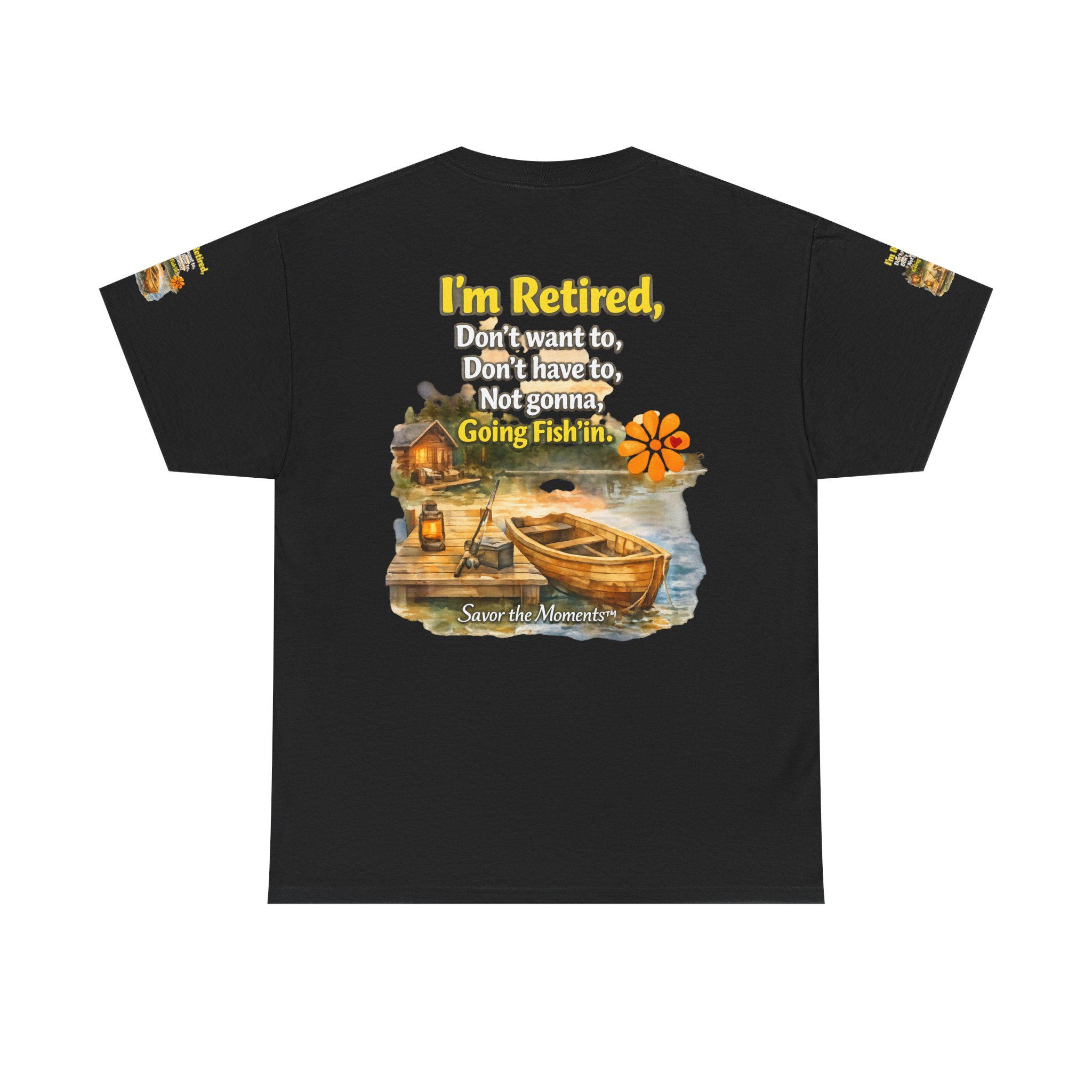 Retired Boat Scene T-Shirt | Fishing Lake Dock Retirement Saying